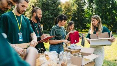 A relaxed midweek gathering centered on shared food, fellowship, and charitable giving in a…